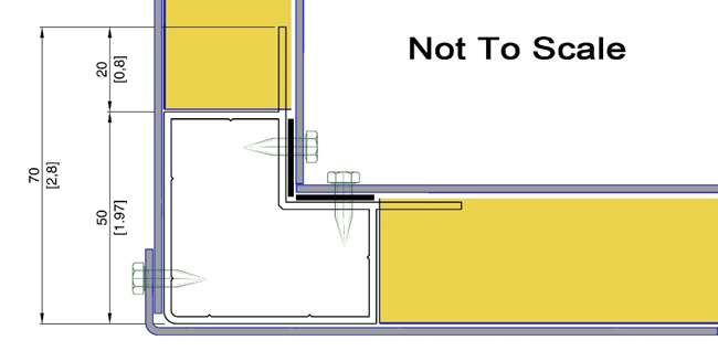 The picture below shows the standard method of installing an inner flat sheet skin against the framing flange followed by insulation and the outer skin. This set up is particularly good for negative pressure applications because the pressure draws the inner skin into the gasket which creates a better seal. Also take note of the overlapping edges at the corner.